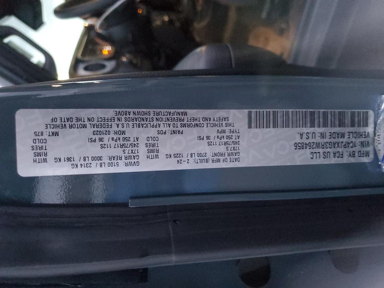 - ВИН: 1C4PJXAG3RW******