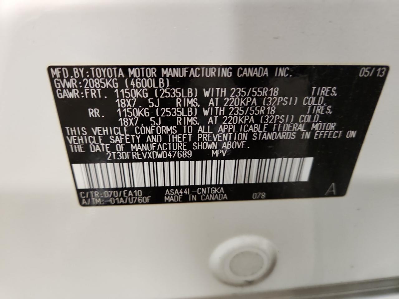 - ВИН: 2T3DFREVXDW******