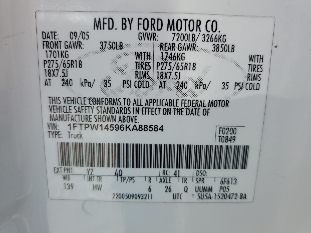- ВИН: 1FTPW14596K******