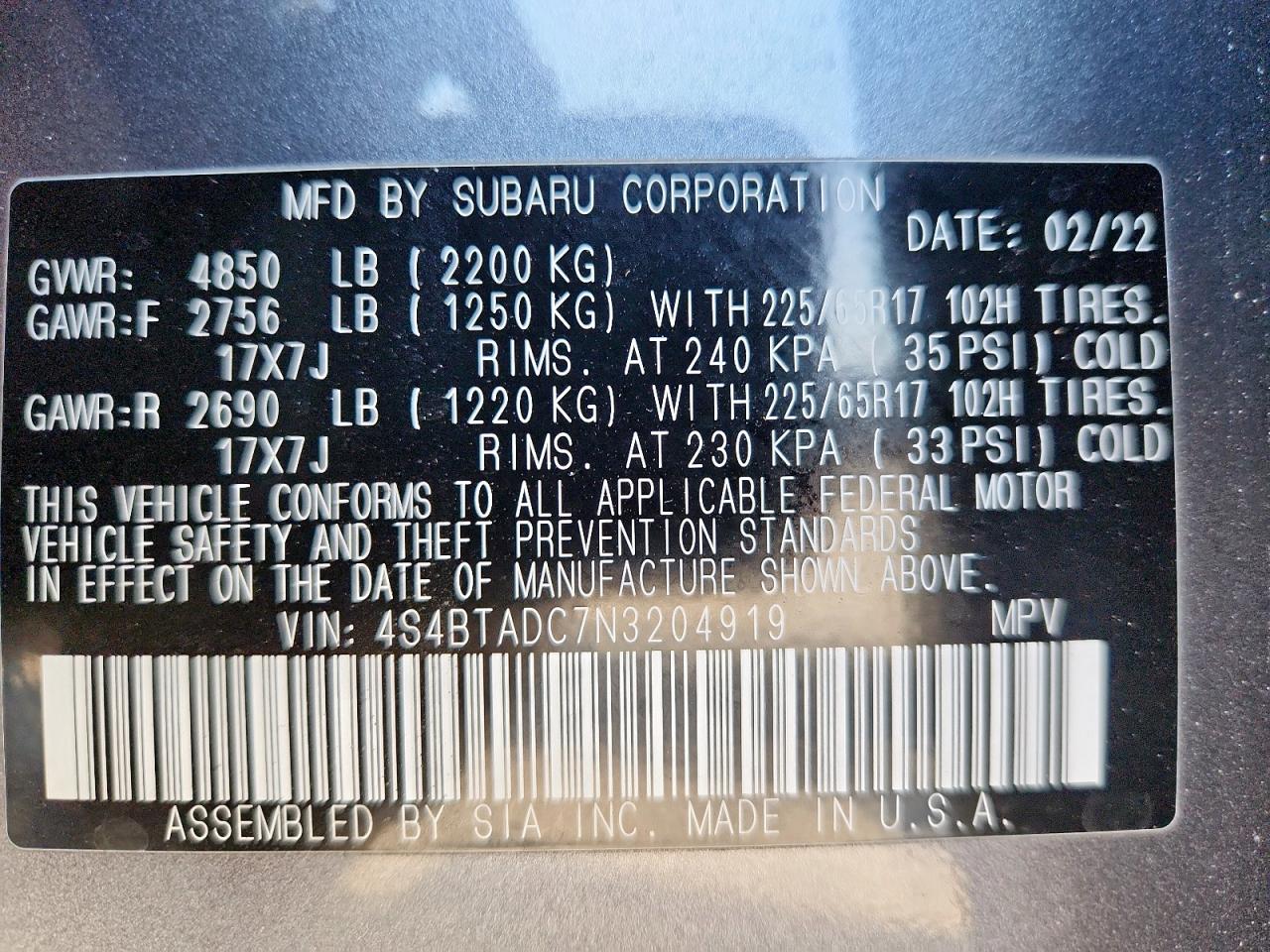- ВИН: 4S4BTADC7N3******