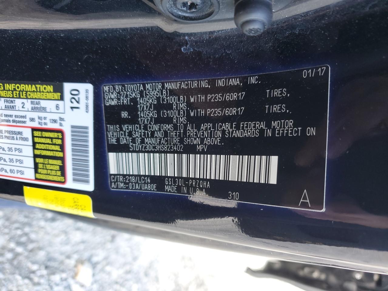 - ВИН: 5TDYZ3DC3HS******