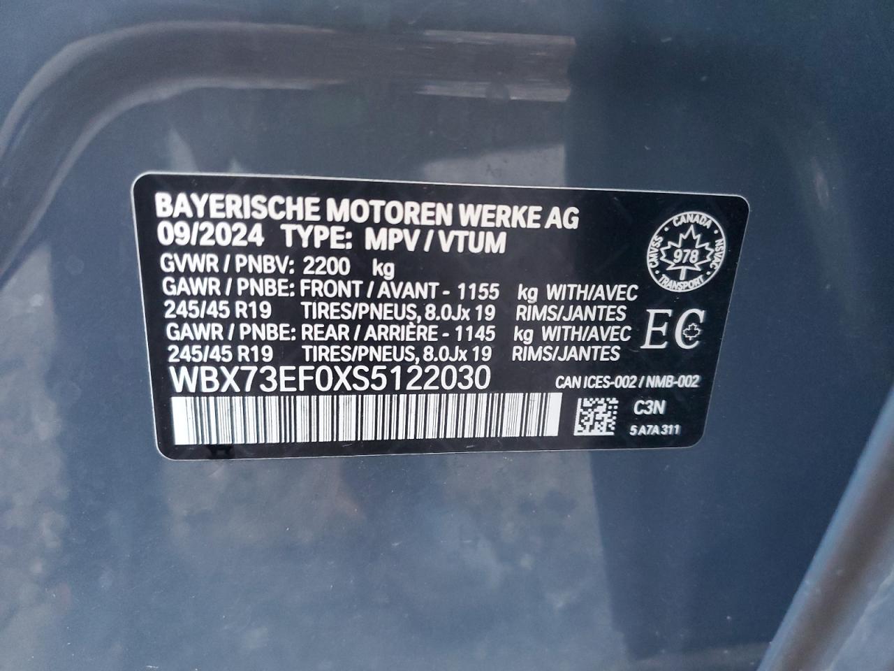 - ВИН: WBX73EF0XS5******