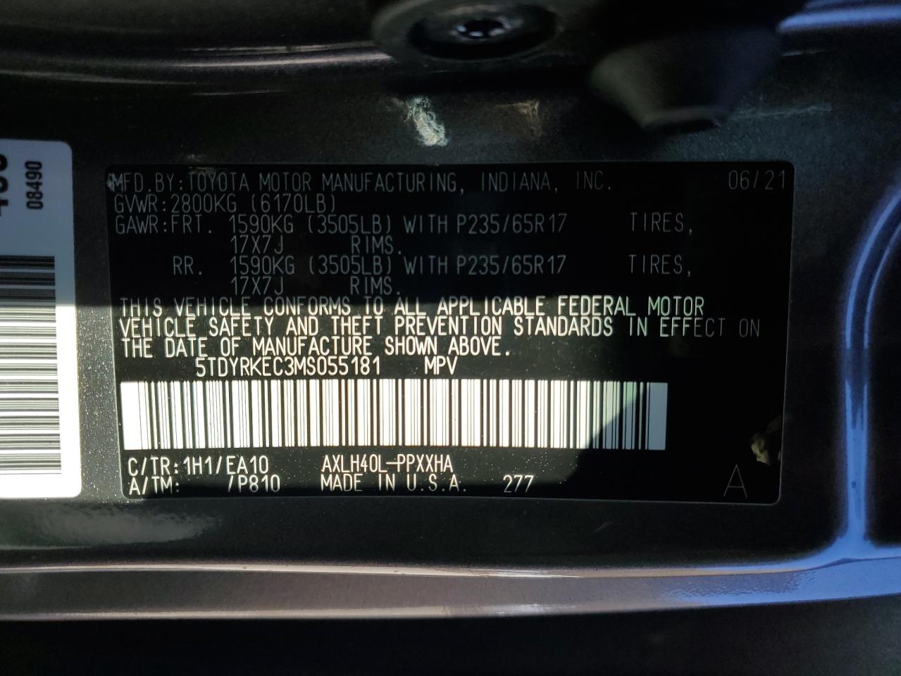 - ВИН: 5TDYRKEC3MS******