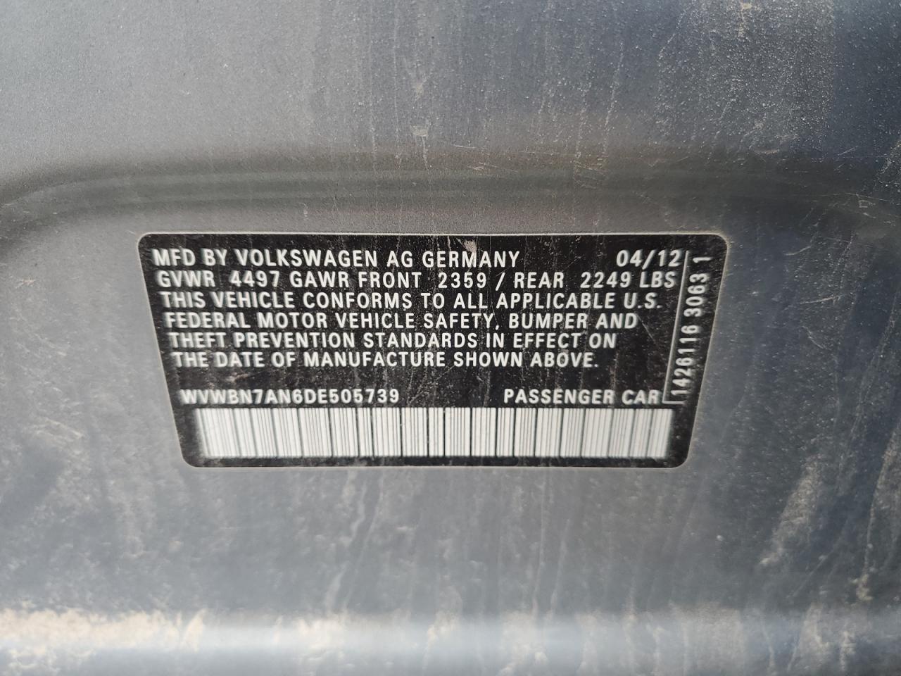 - ВИН: WVWBN7AN6DE******