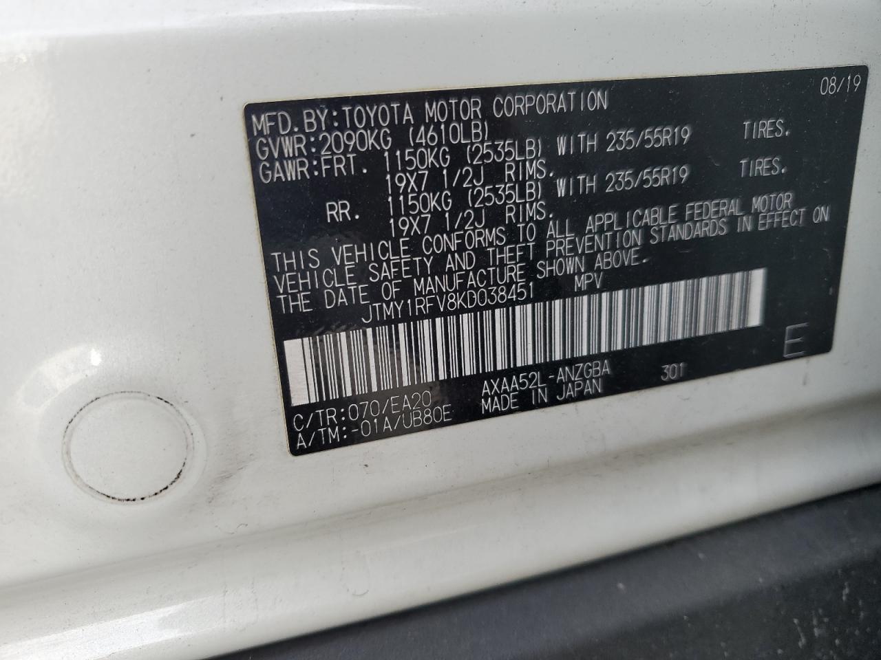 - ВИН: JTMY1RFV8KD******