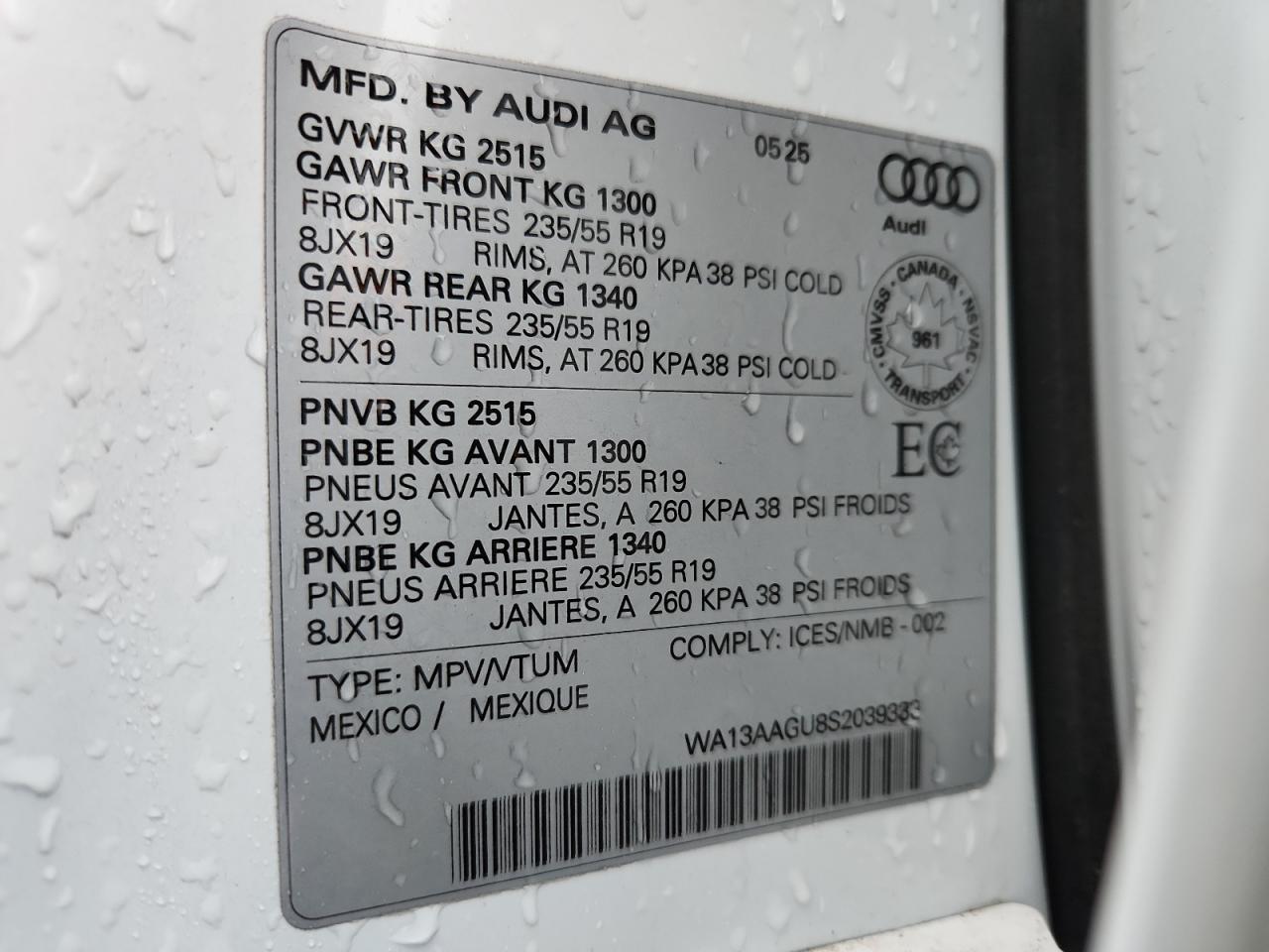 - ВИН: WA13AAGU8S2******