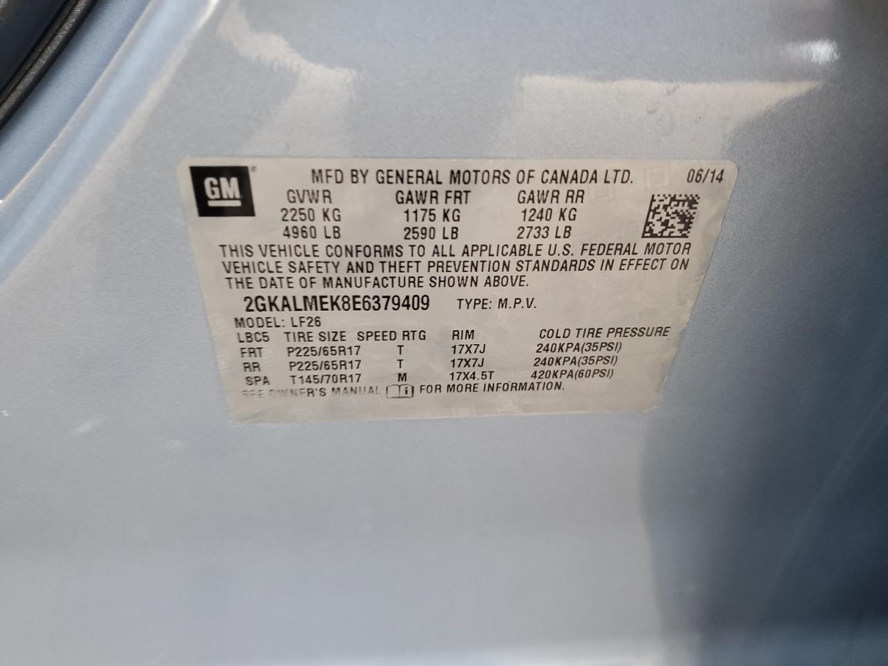 - ВИН: 2GKALMEK8E6******