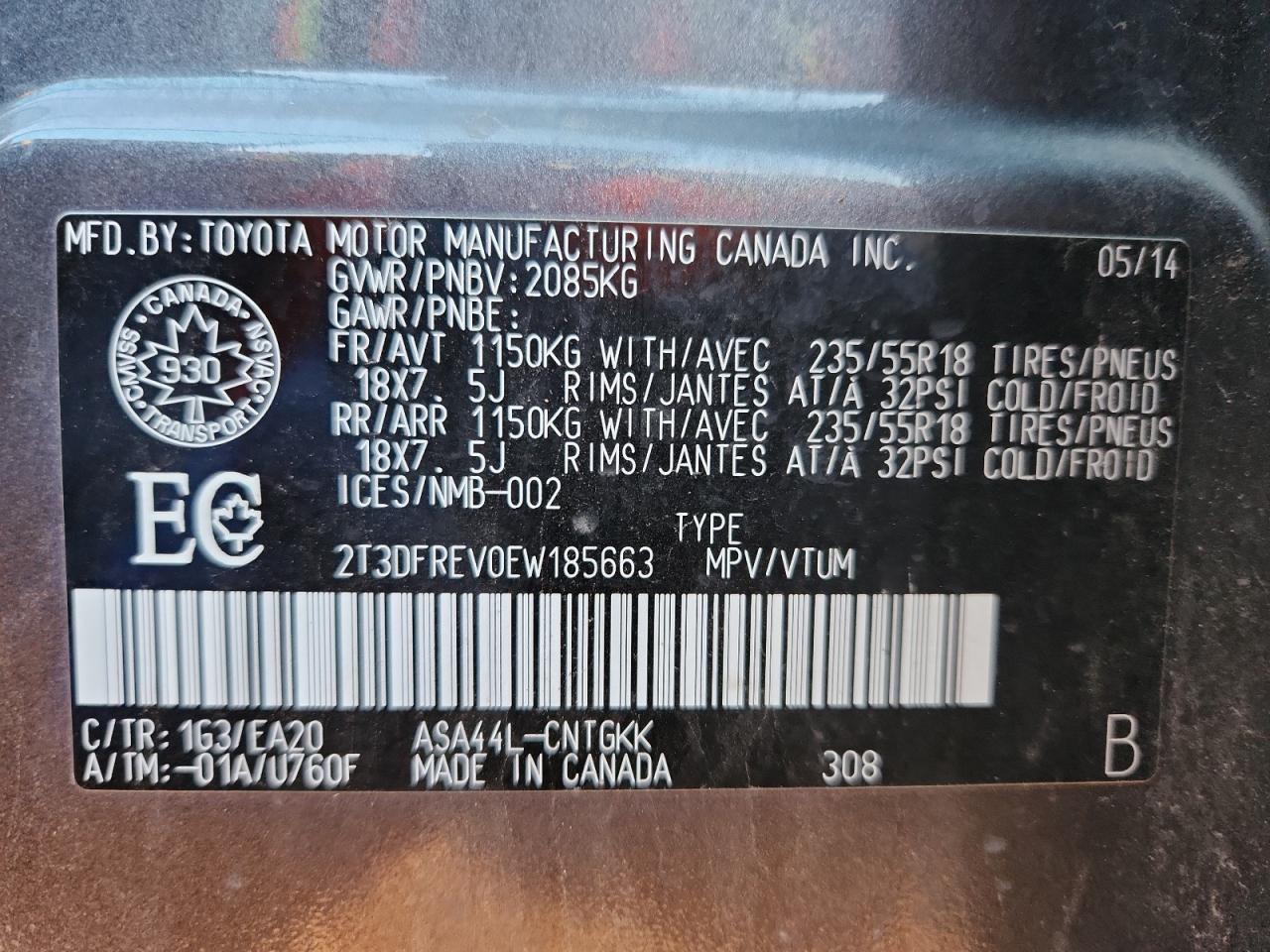 - ВИН: 2T3DFREV0EW******