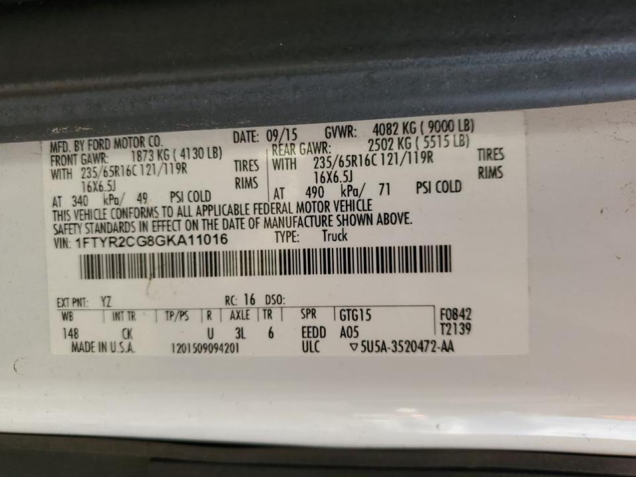 - ВИН: 1FTYR2CG8GK******