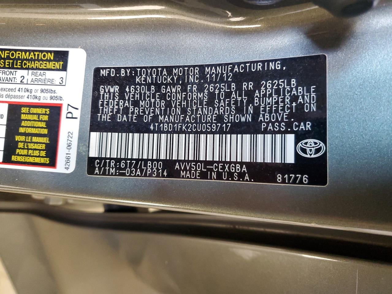 - ВИН: 4T1BD1FK2CU******