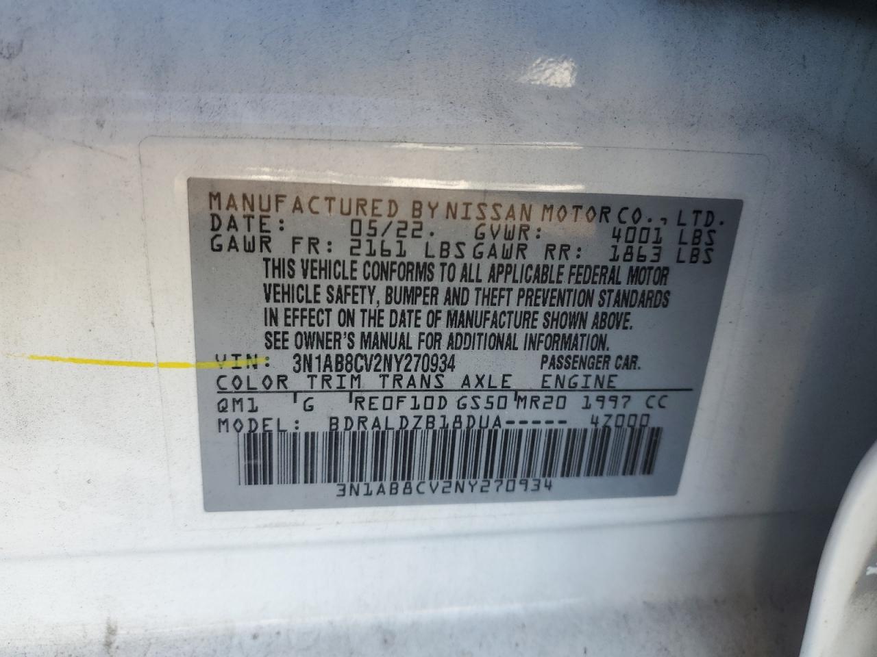 - ВИН: 3N1AB8CV2NY******