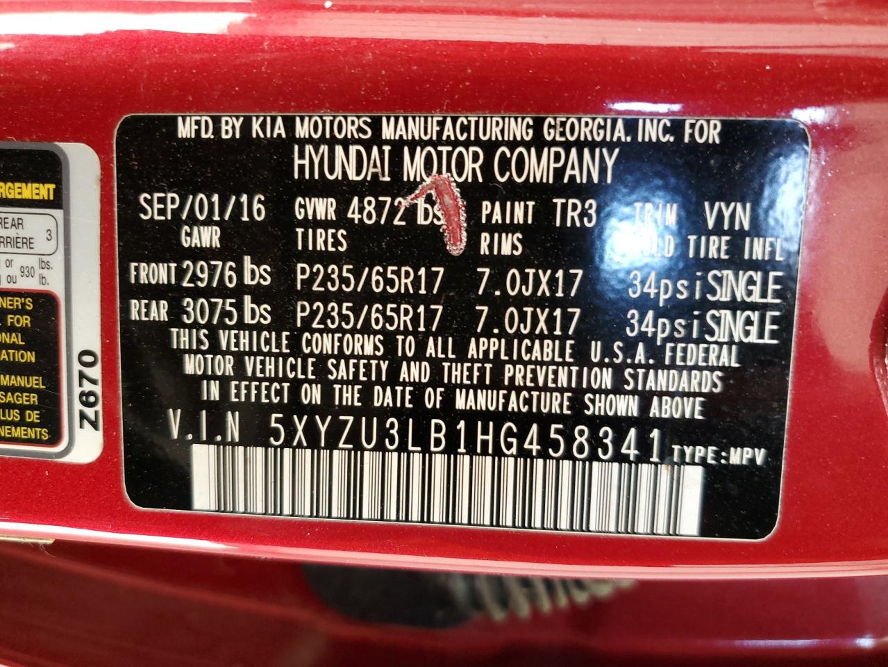- ВИН: 5XYZU3LB1HG******