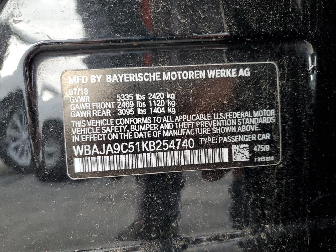- ВИН: WBAJA9C51KB******