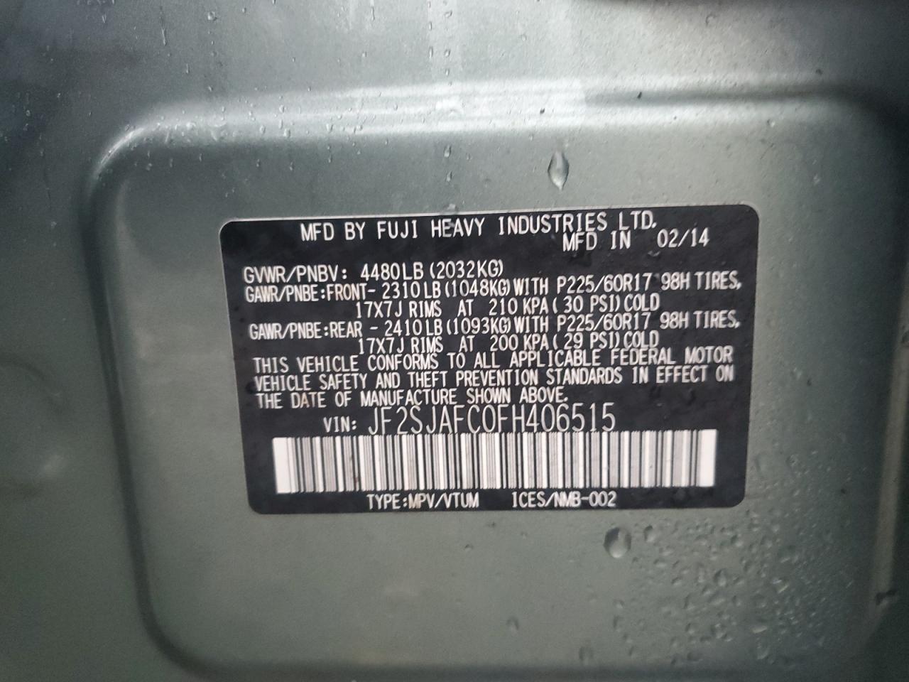 - ВИН: JF2SJAFC0FH******