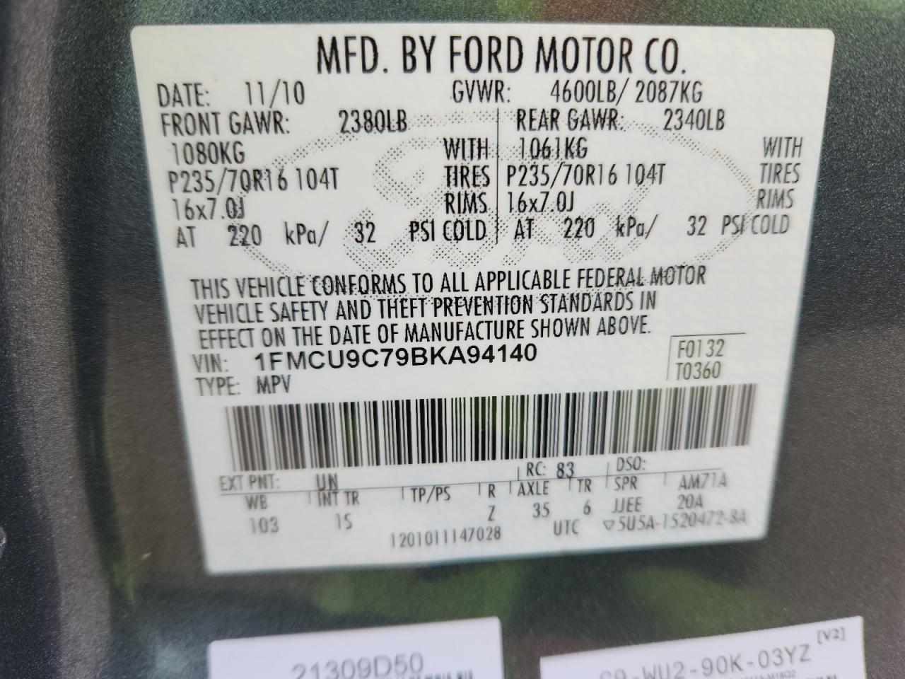 - ВИН: 1FMCU9C79BK******