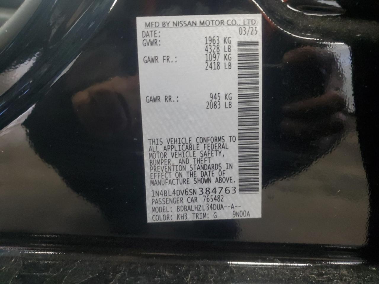 - ВИН: 1N4BL4DV6SN******