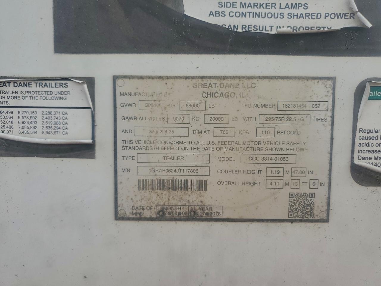 2018 GREAT DANE CCC-3314-01053 DRY VAN TRAILER из США
