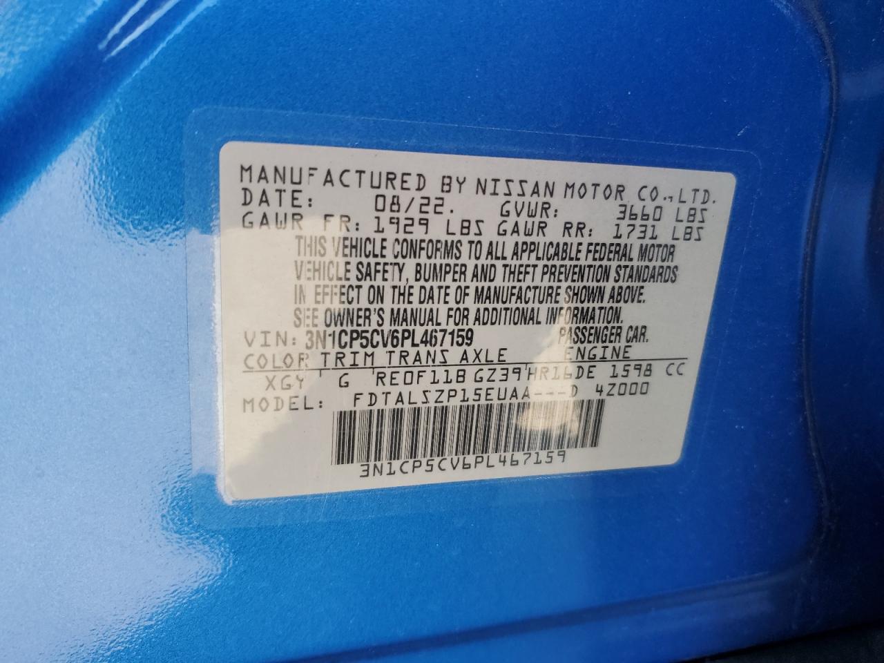- ВИН: 3N1CP5CV6PL******