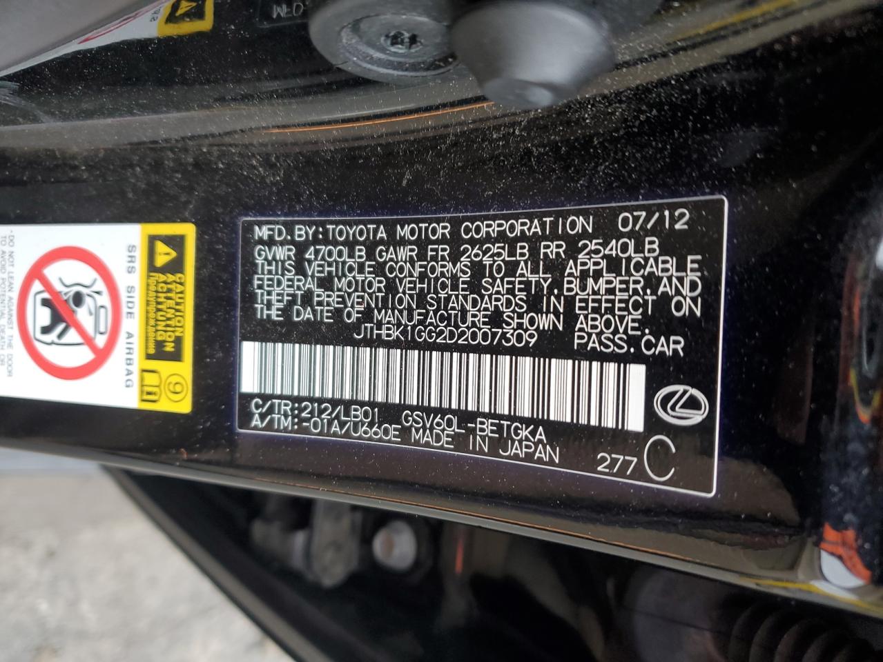 - ВИН: JTHBK1GG2D2******