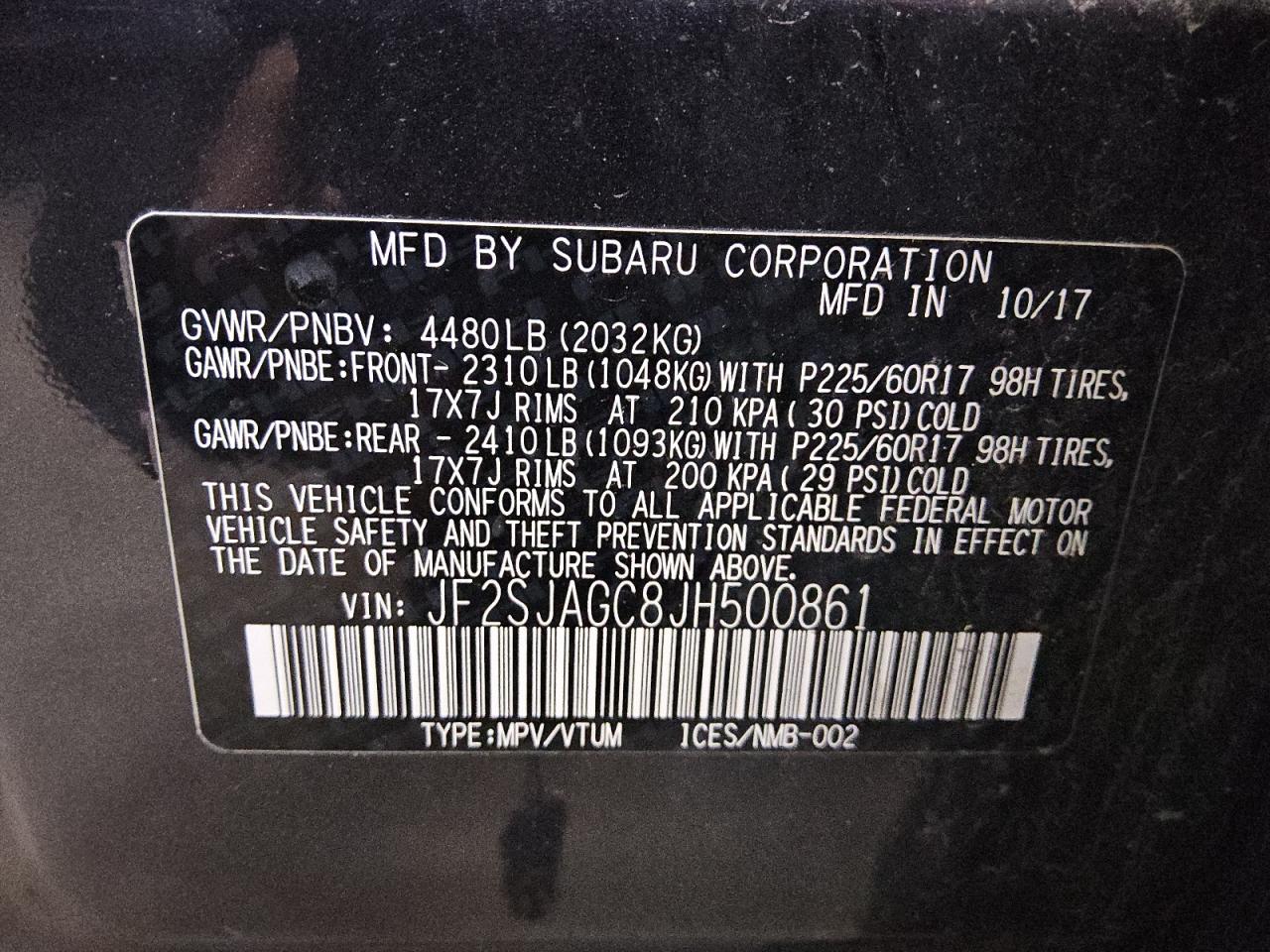 - ВИН: JF2SJAGC8JH******