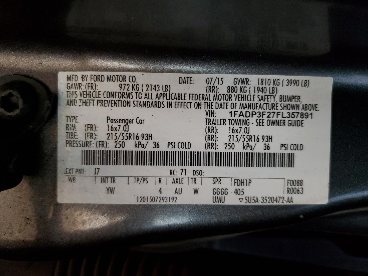 - ВИН: 1FADP3F27FL******