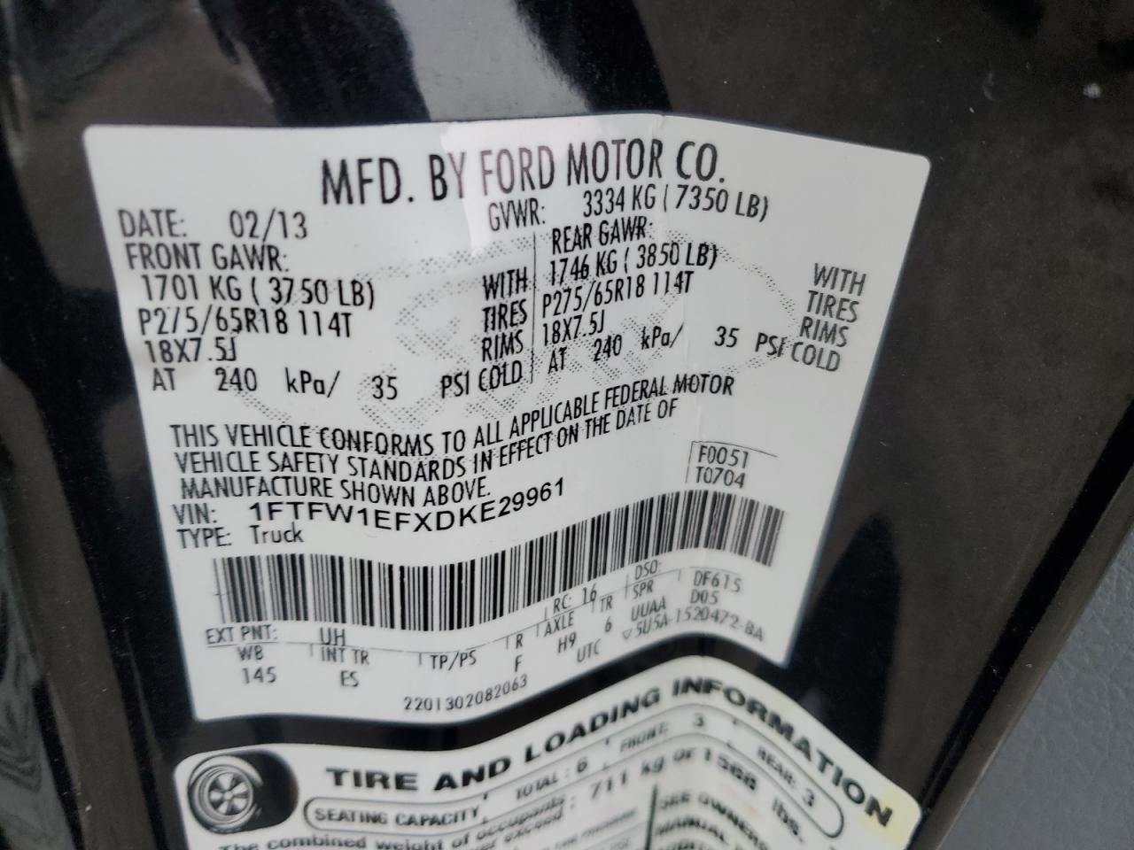 - ВИН: 1FTFW1EFXDK******