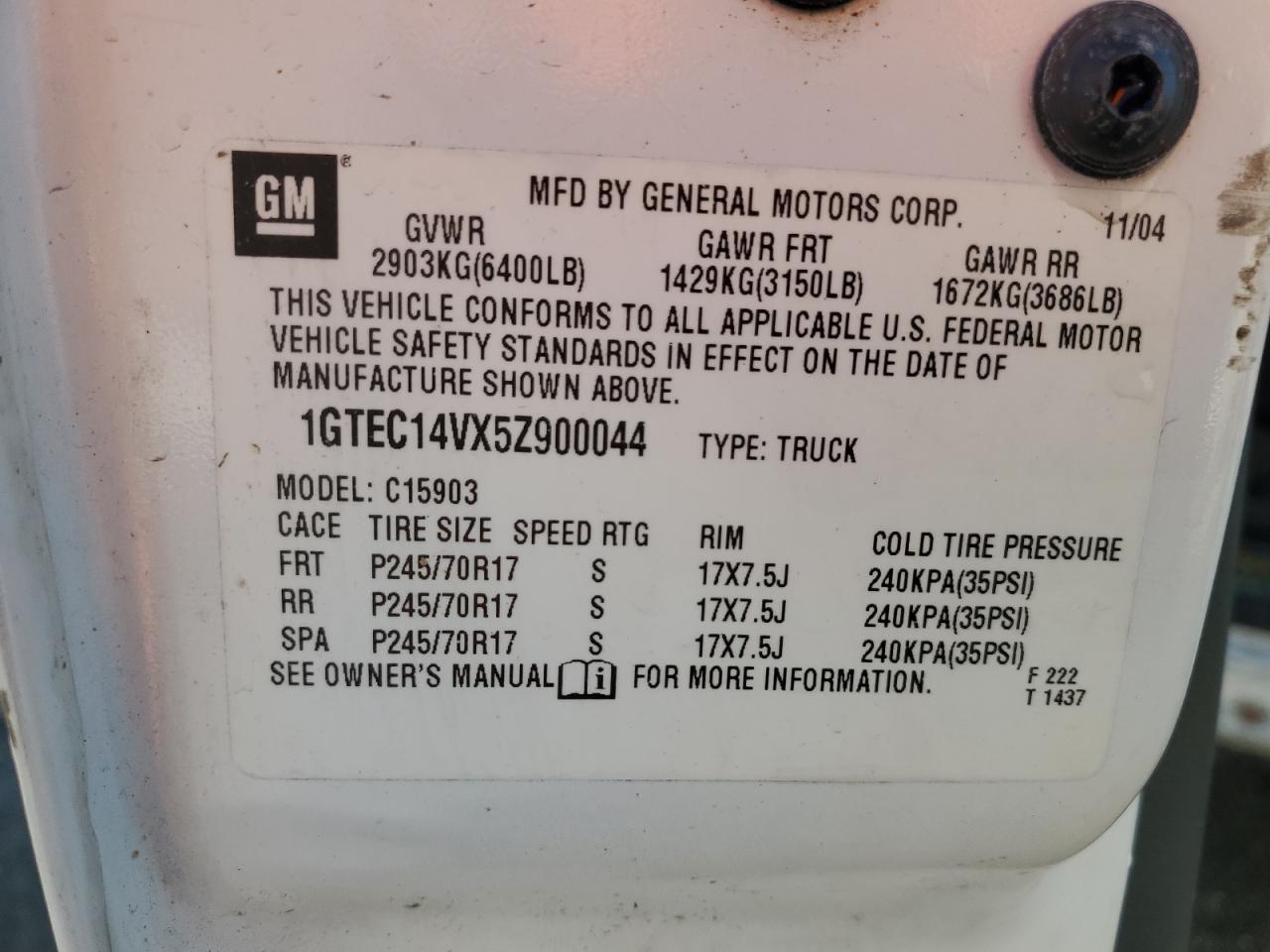 - ВИН: 1GTEC14VX5Z******