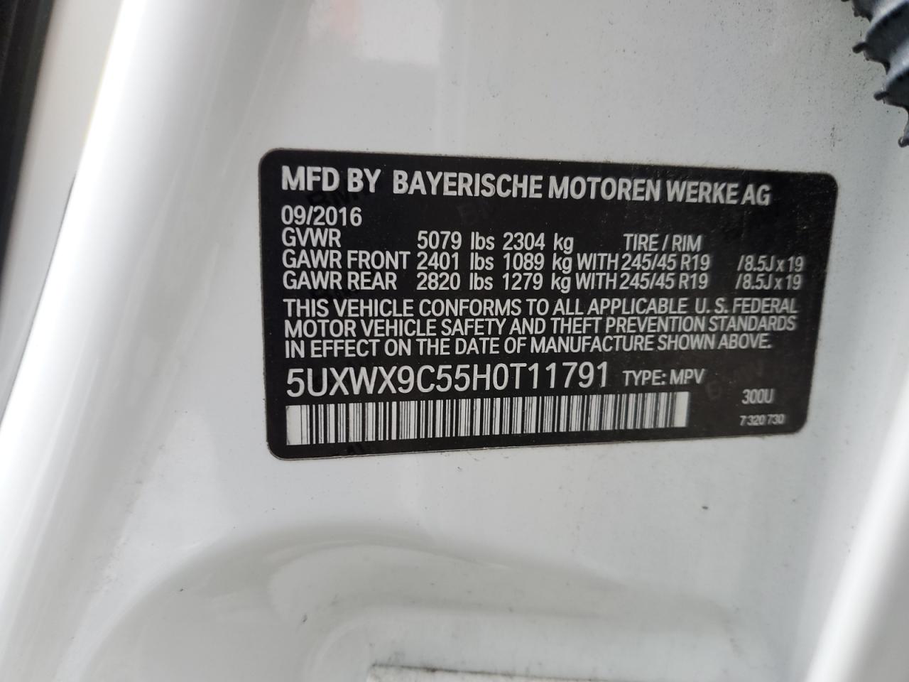 - ВИН: 5UXWX9C55H0******