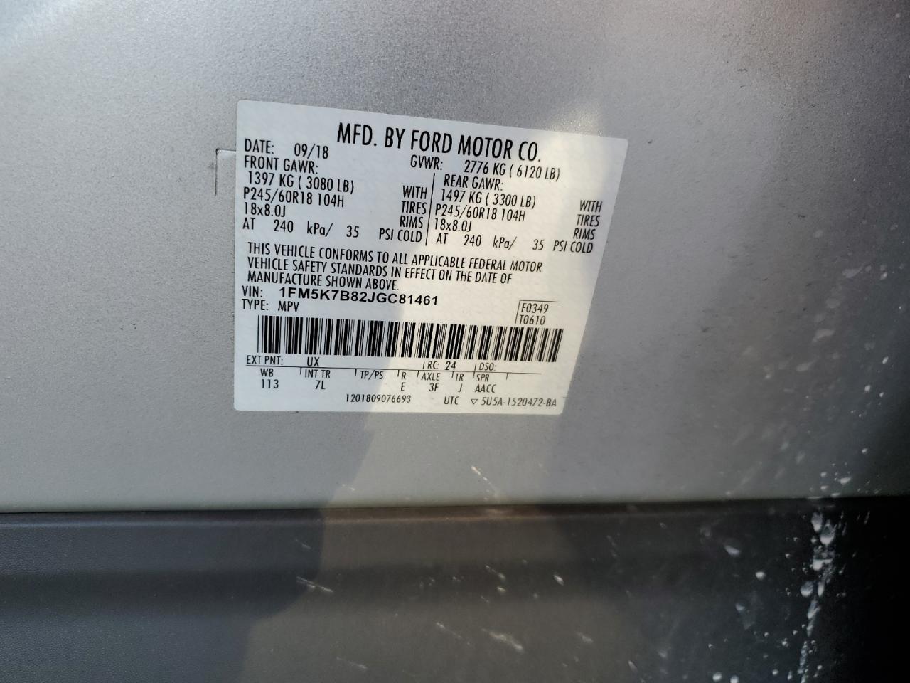 - ВИН: 1FM5K7B82JG******