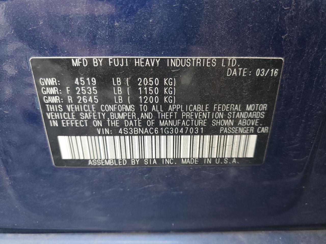 - ВИН: 4S3BNAC61G3******