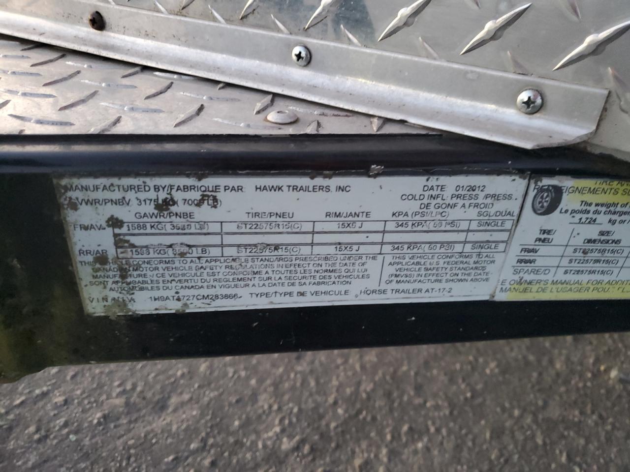 2012 HAWK AT-17-2 LIVESTOCK TRAILER из США
