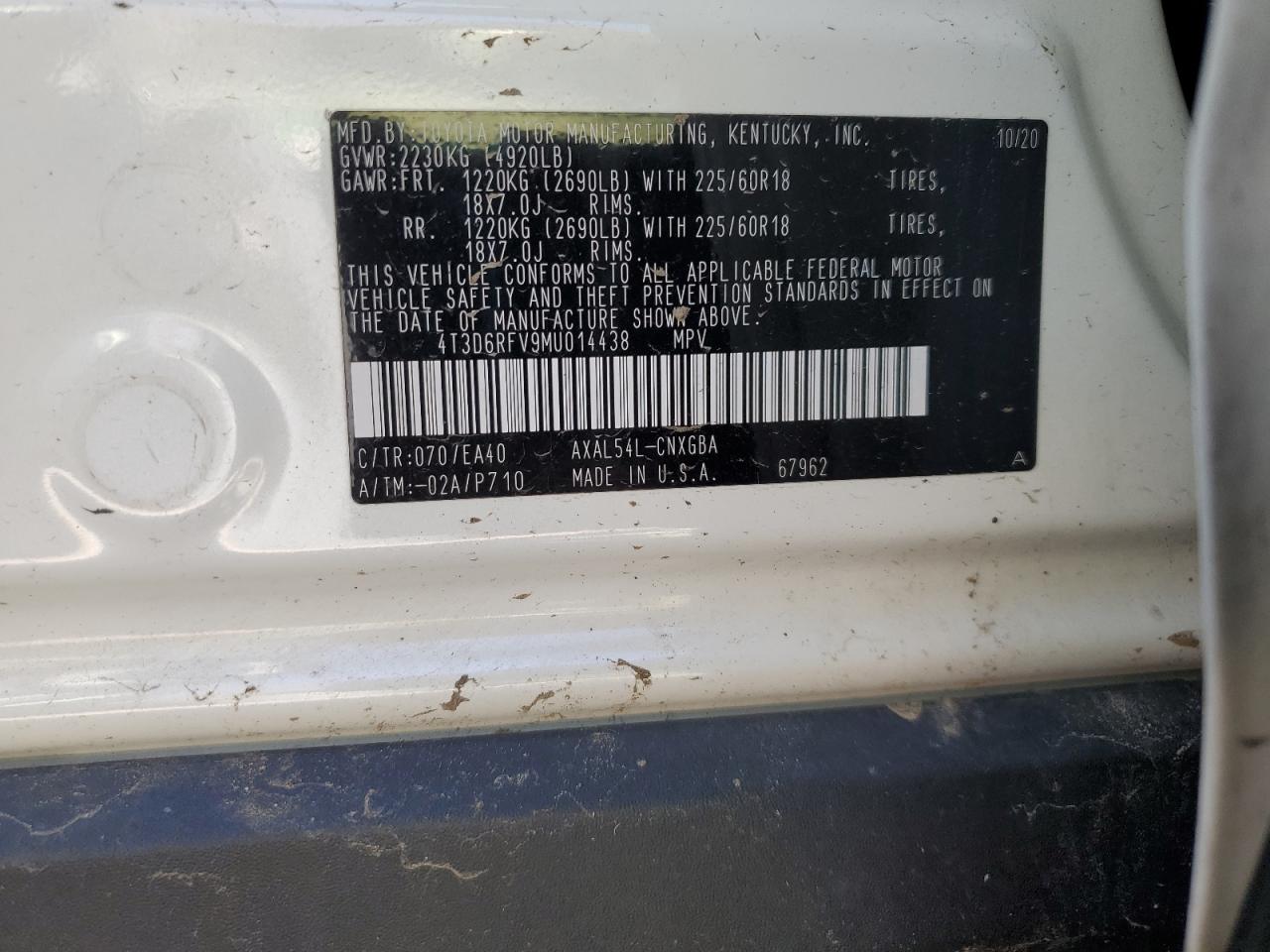 - ВИН: 4T3D6RFV9MU******