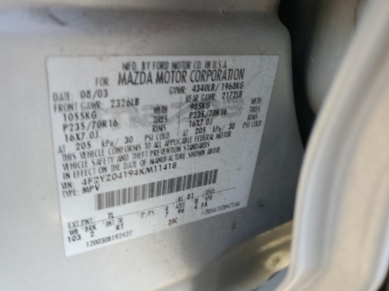 - ВИН: 4F2YZ04194K******