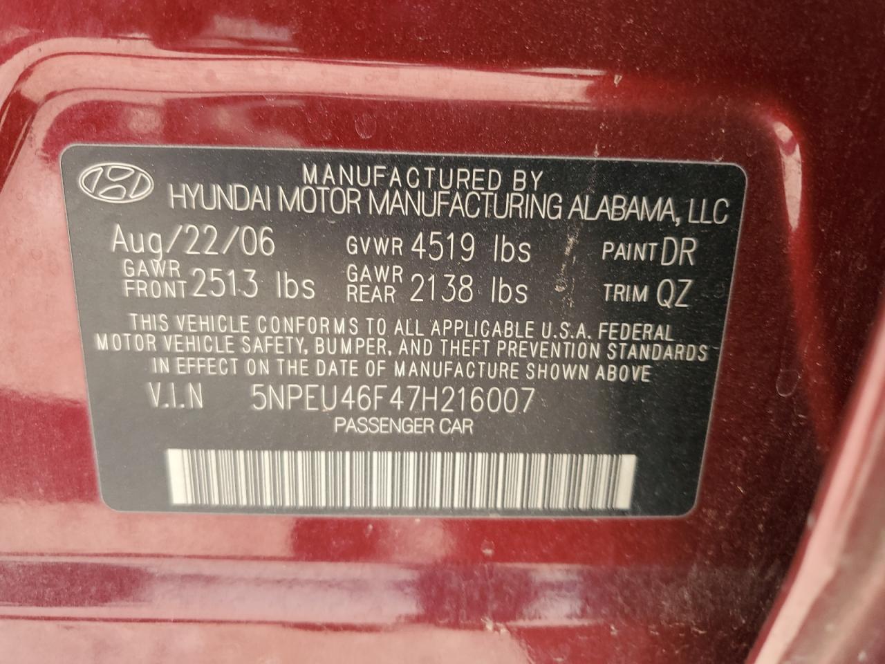 2007 HYUNDAI SONATA SE из США