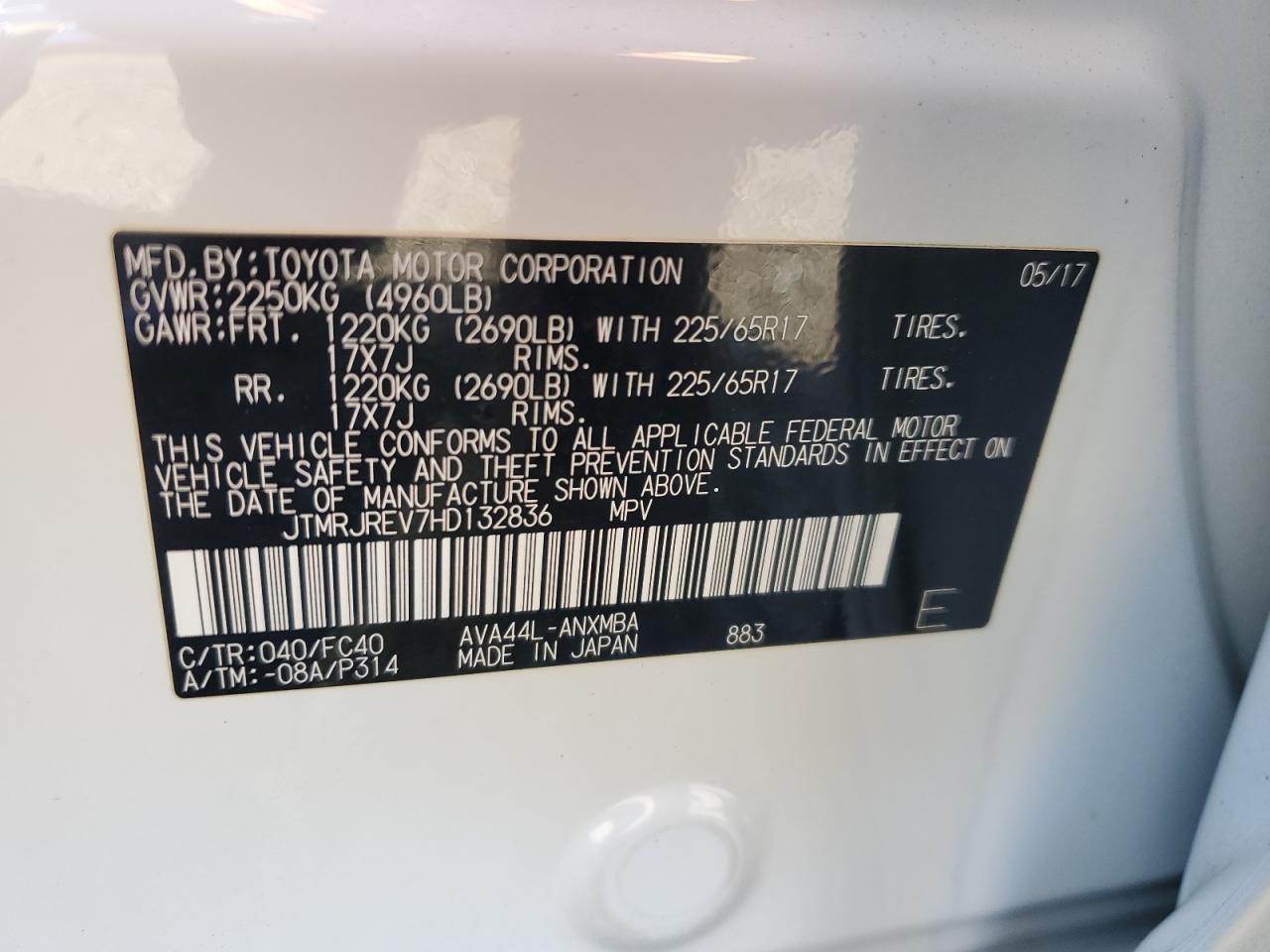 - ВИН: JTMRJREV7HD******