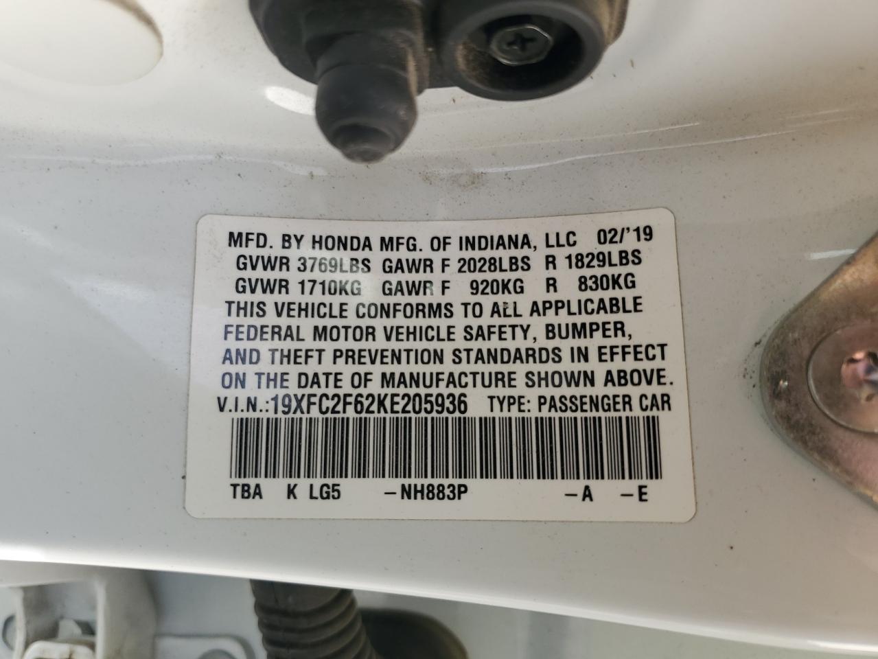 - ВИН: 19XFC2F62KE******