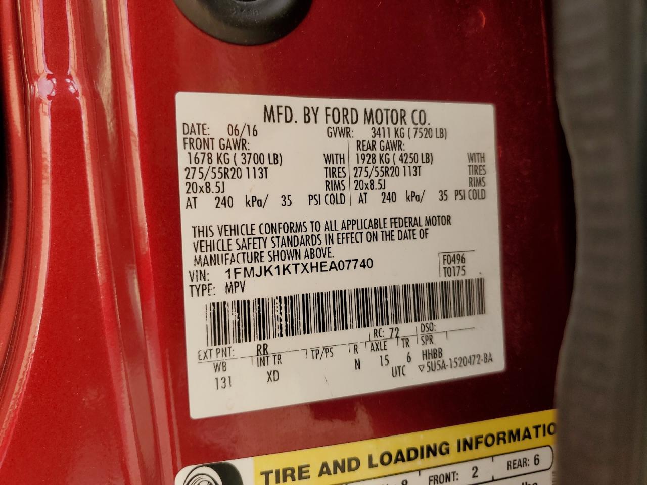 - ВИН: 1FMJK1KTXHE******
