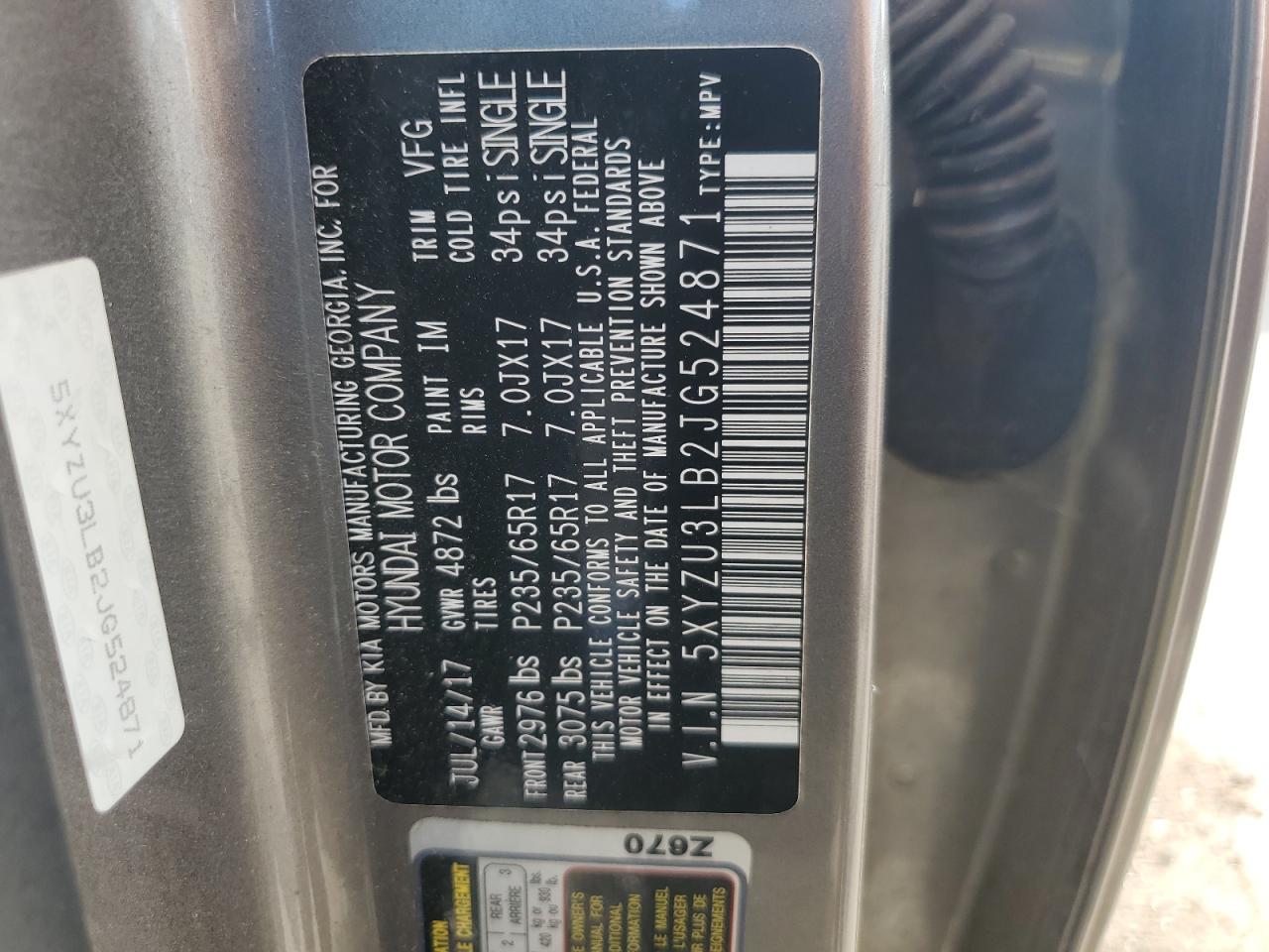 - ВИН: 5XYZU3LB2JG******