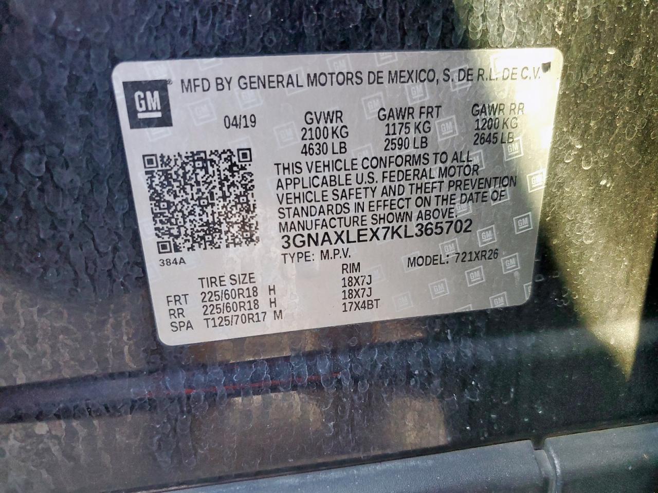 - ВИН: 3GNAXLEX7KL******