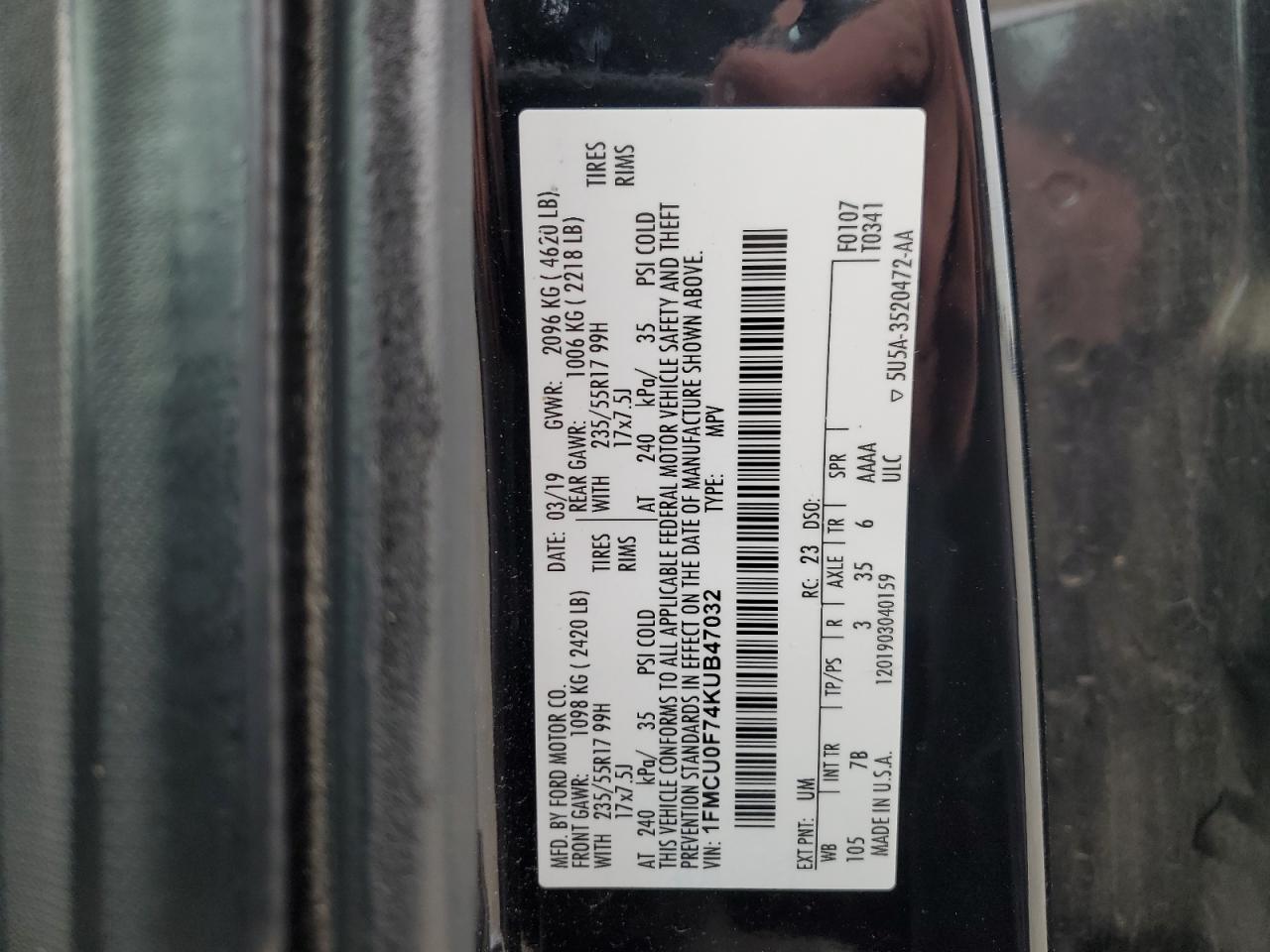 - ВИН: 1FMCU0F74KU******