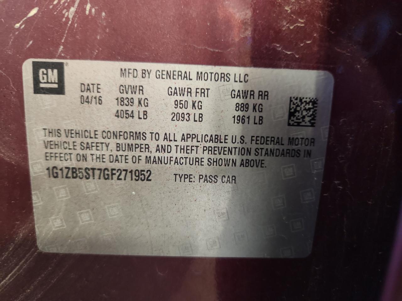 - ВИН: 1G1ZB5ST7GF******