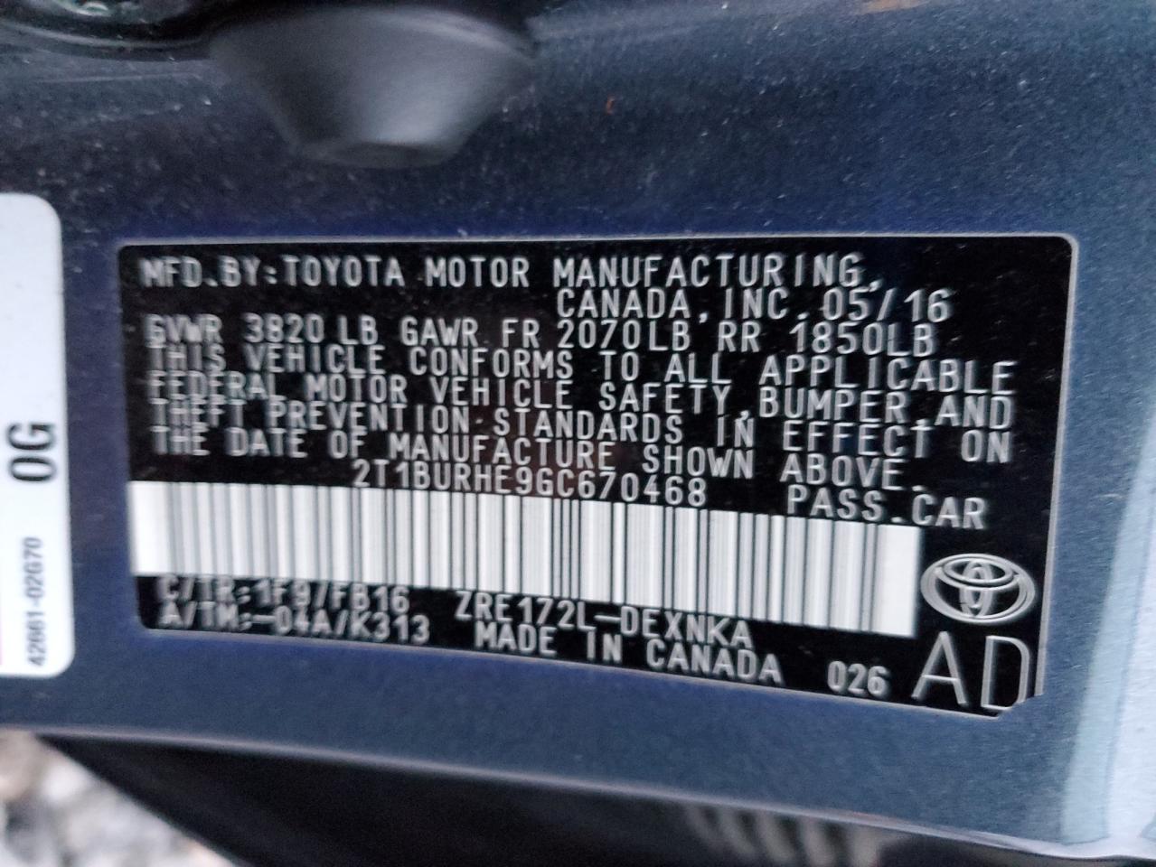 - ВИН: 2T1BURHE9GC******