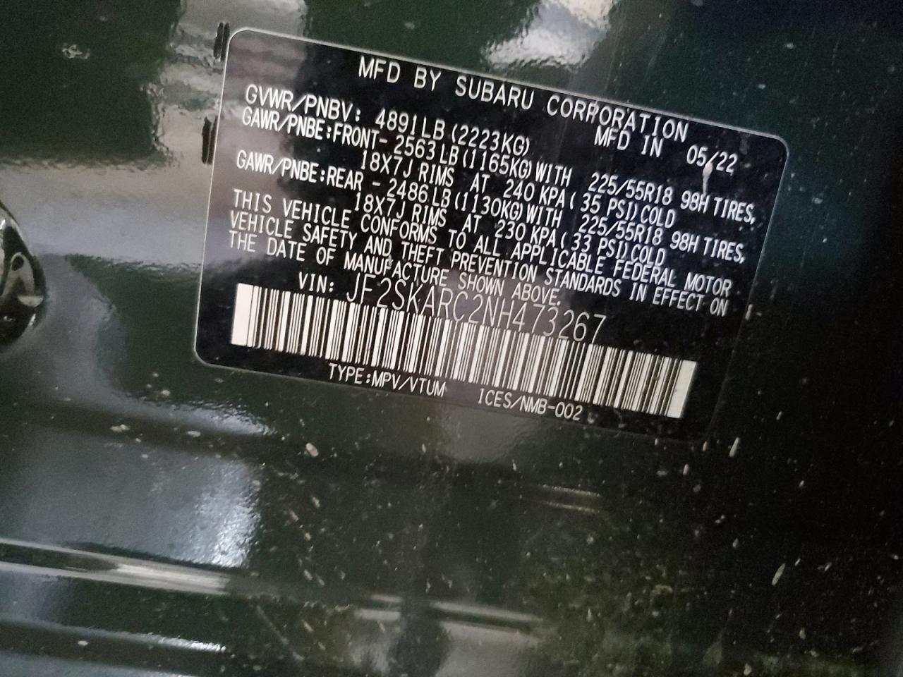 - ВИН: JF2SKARC2NH******