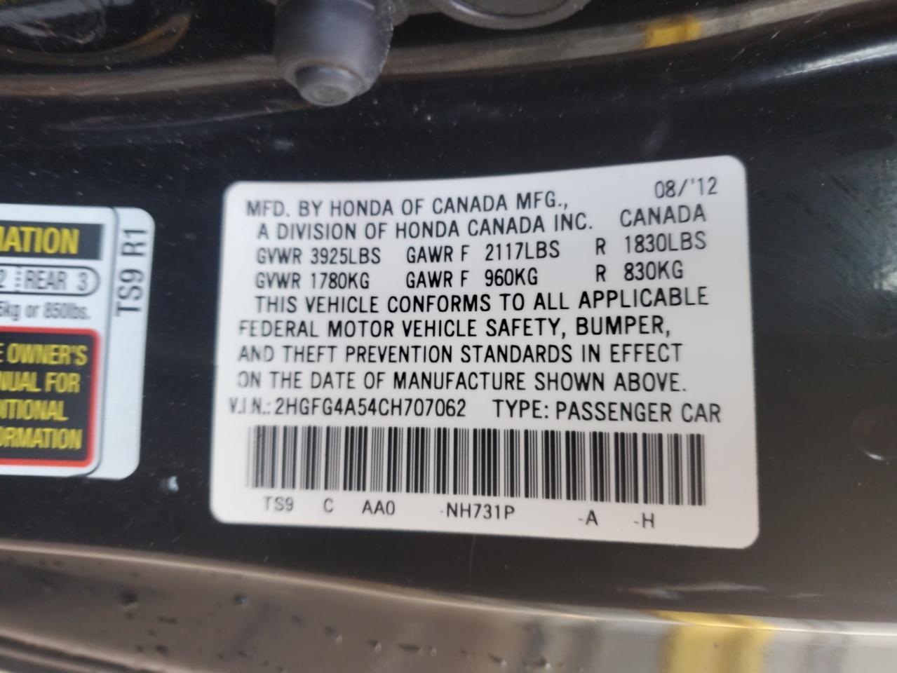 - ВИН: 2HGFG4A54CH******