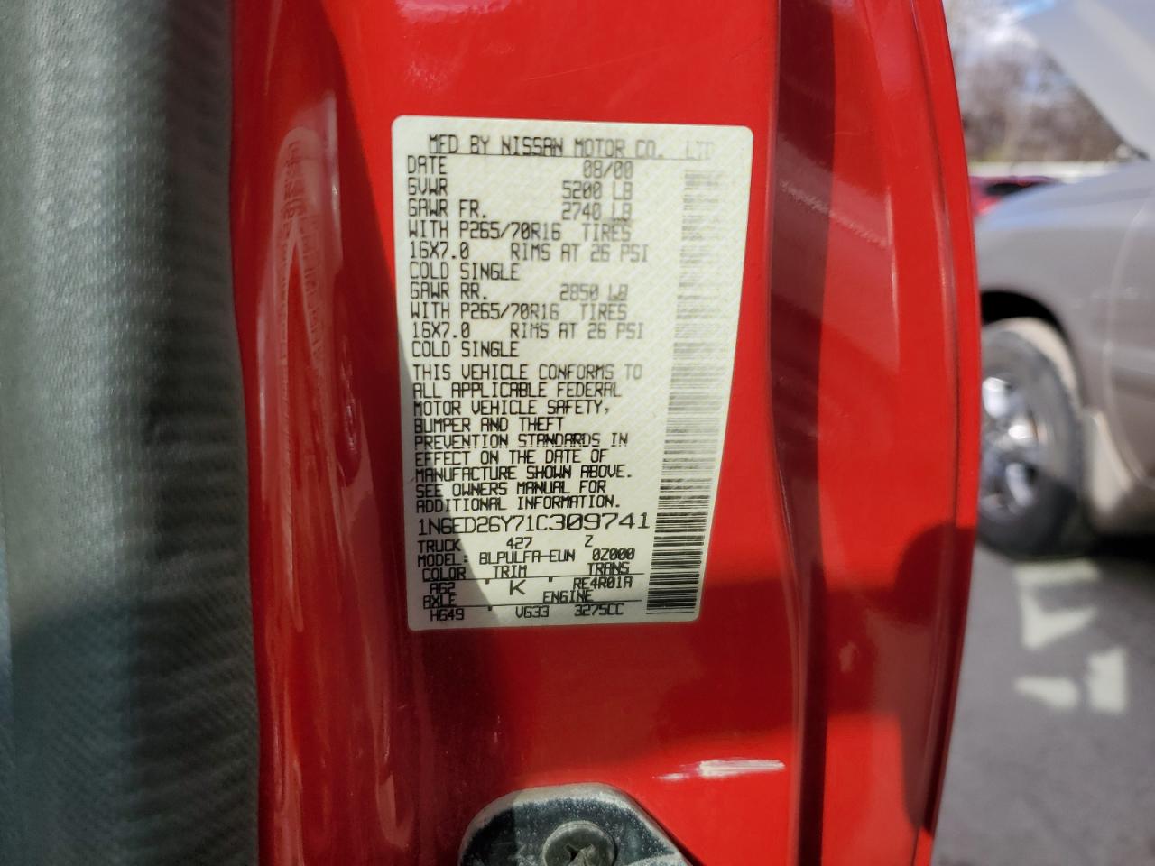 - ВИН: 1N6ED26Y71C******