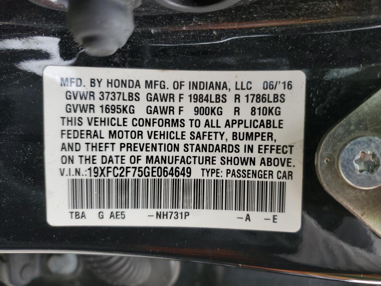 - ВИН: 19XFC2F75GE******