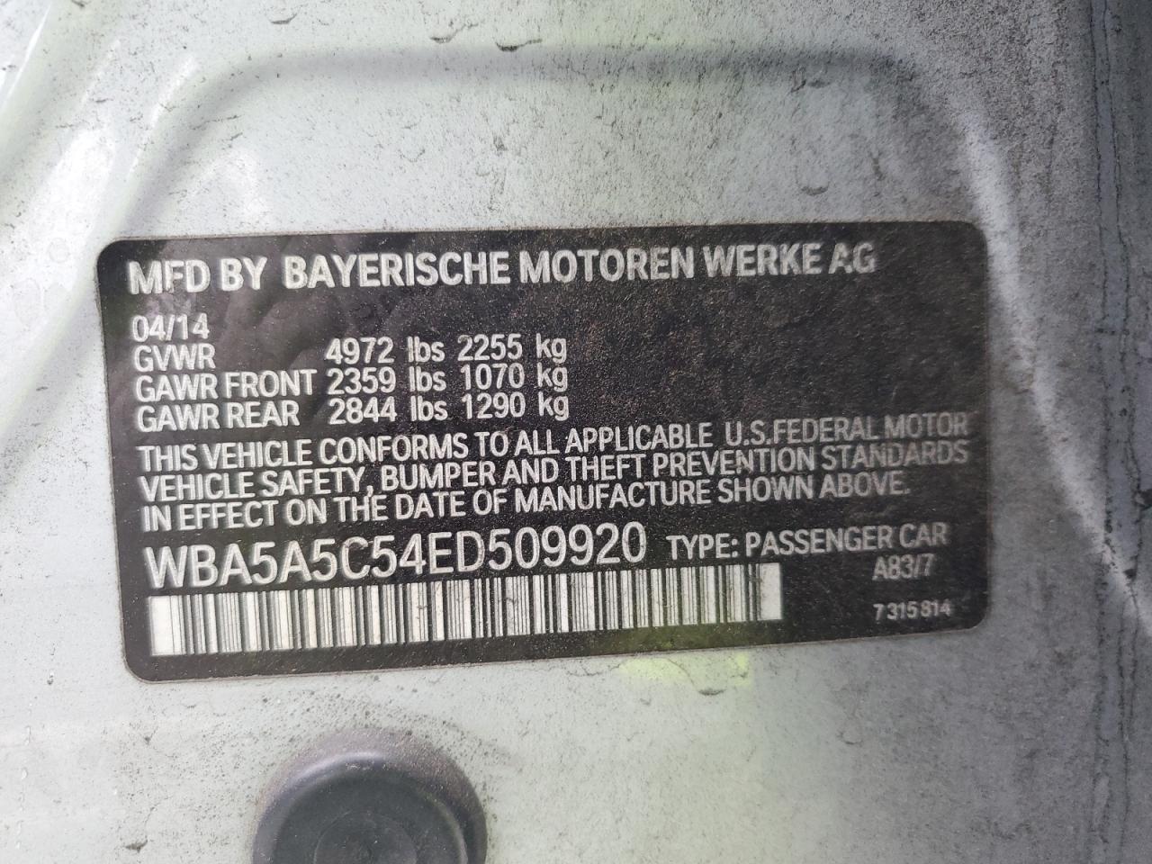 - ВИН: WBA5A5C54ED******
