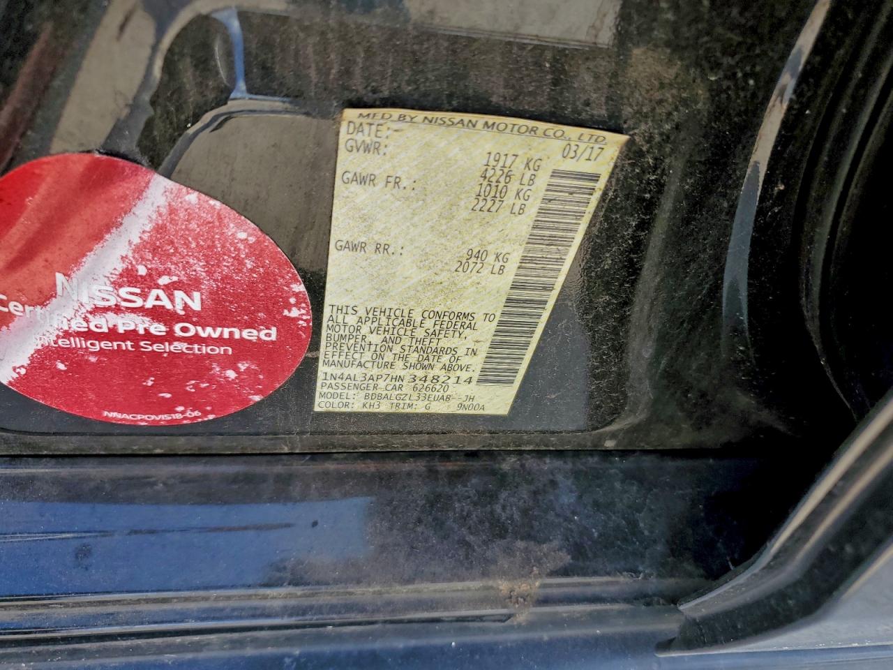 - ВИН: 1N4AL3AP7HN******