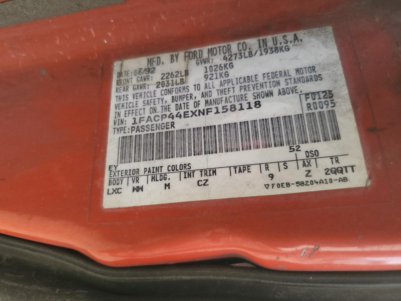 1992 FORD MUSTANG LX