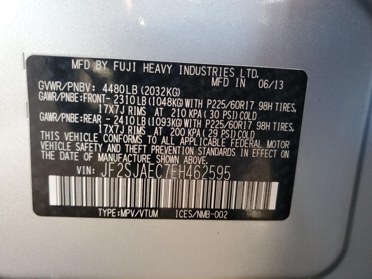 - ВИН: JF2SJAEC7EH******